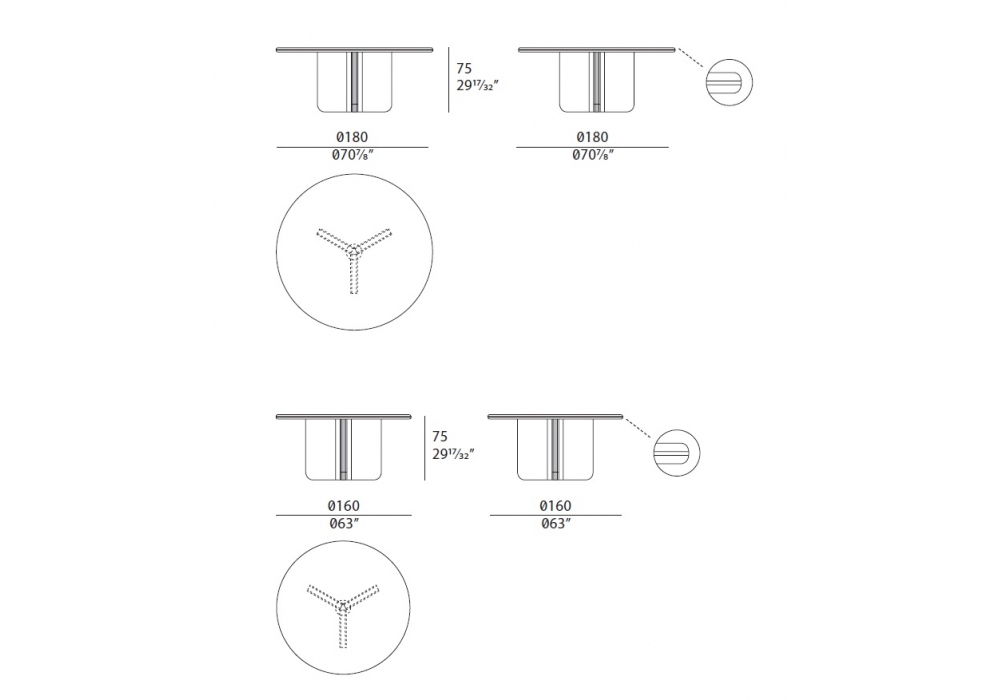 | Dimensioni | Ø 180 x H 75 cm; Ø 160 x H 75 cm. |