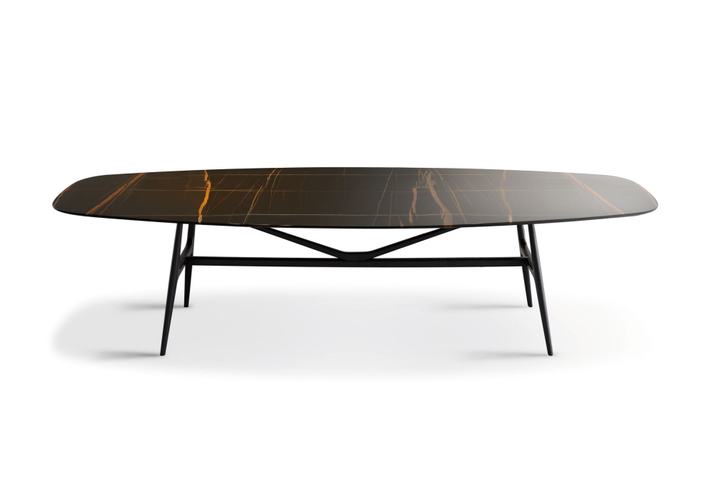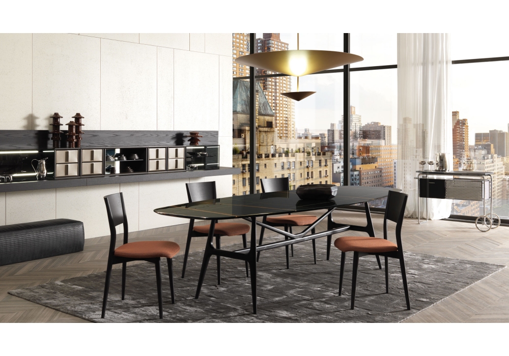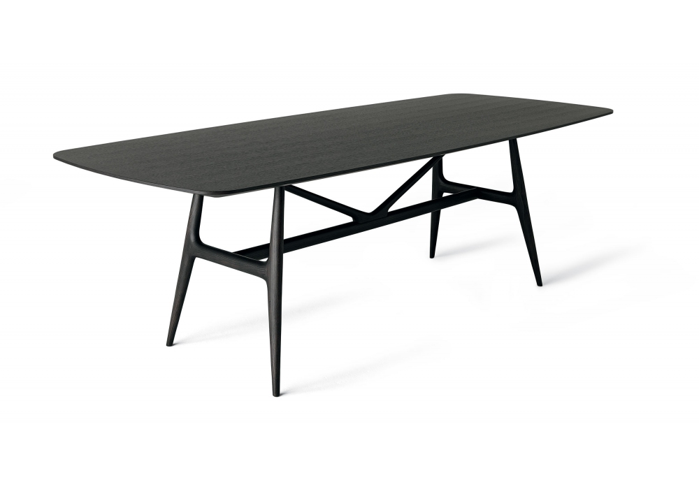 Gaudì firmato da Ferruccio Laviani per MisuraEmme è un tavolo realizzato con base in massello di rovere tinto e piano in legno nella stessa finitura della base o in marmo. Disponibile in diverse finiture e dimensioni.