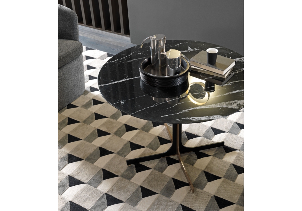 Janus Lounge firmato da Francesco Lucchese per MisuraEmme è un tavolo con struttura caratterizzata da un accoppiamento di due doppie”C” in metallo, in modo da formare una croce, in finitura nichelata oro. Piano in marmo, essenza opaca o lucida o in vetro. Disponibile in diverse finiture.