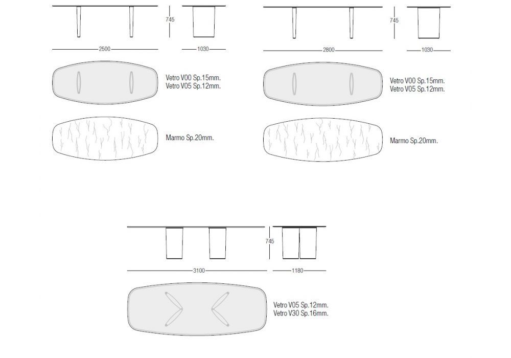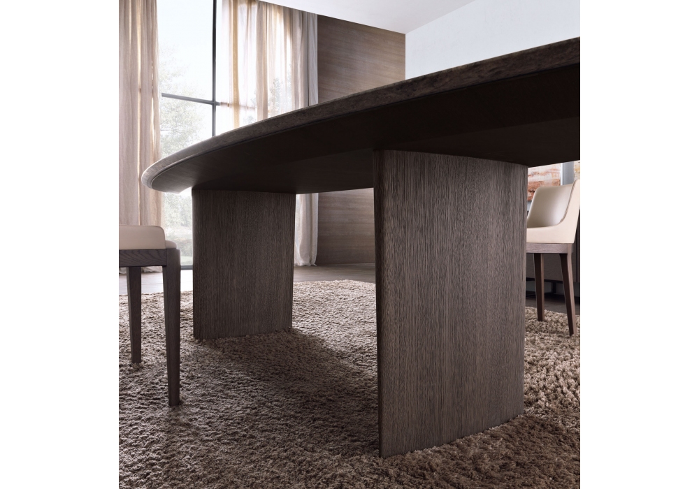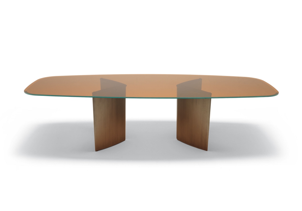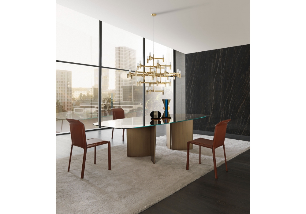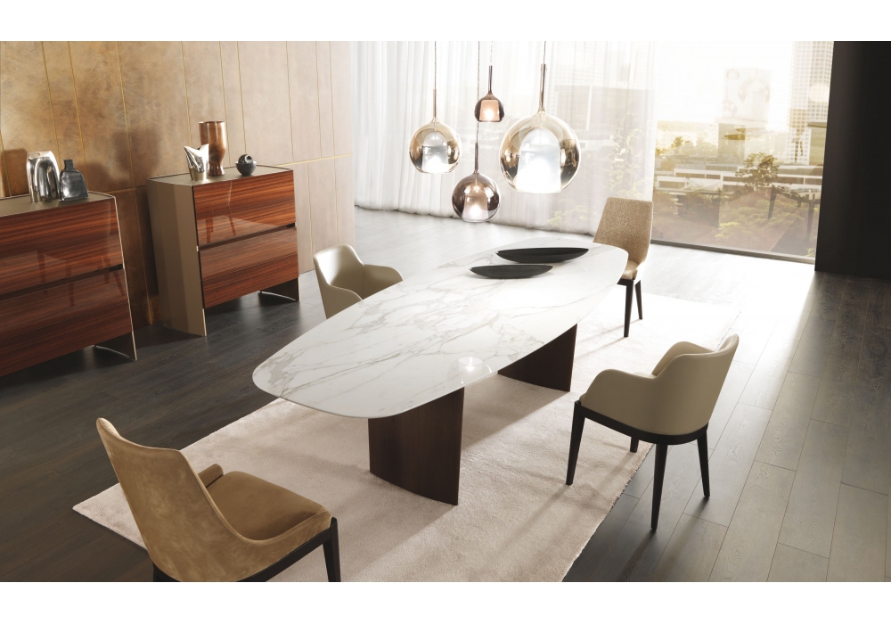 Ala firmata da Ferruccio Laviani per MisuraEmme è una serie di tavoli con base legno in essenza, laccato opaco o laccato opaco anticato. Piano sagomato semiovale con piano in marmo in tutte le varianti o piano in vetro.