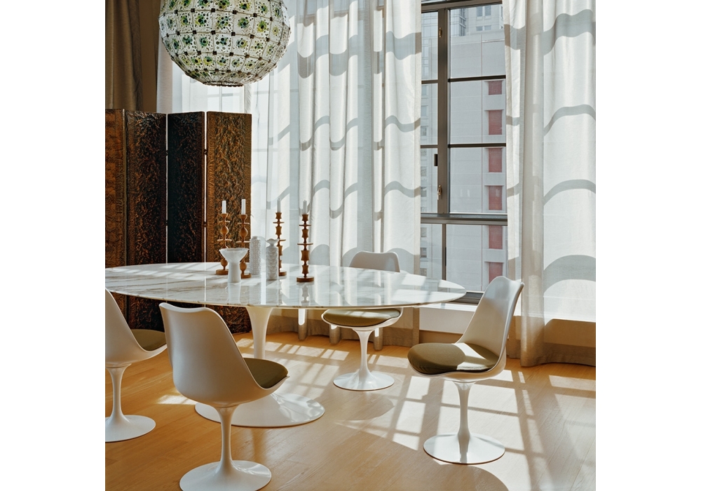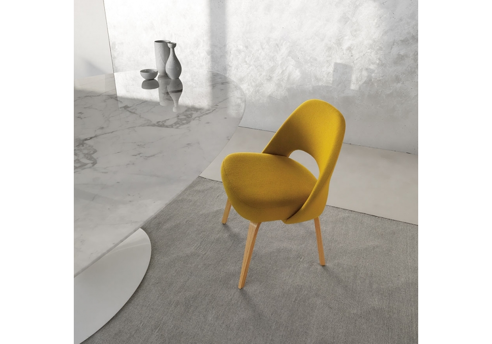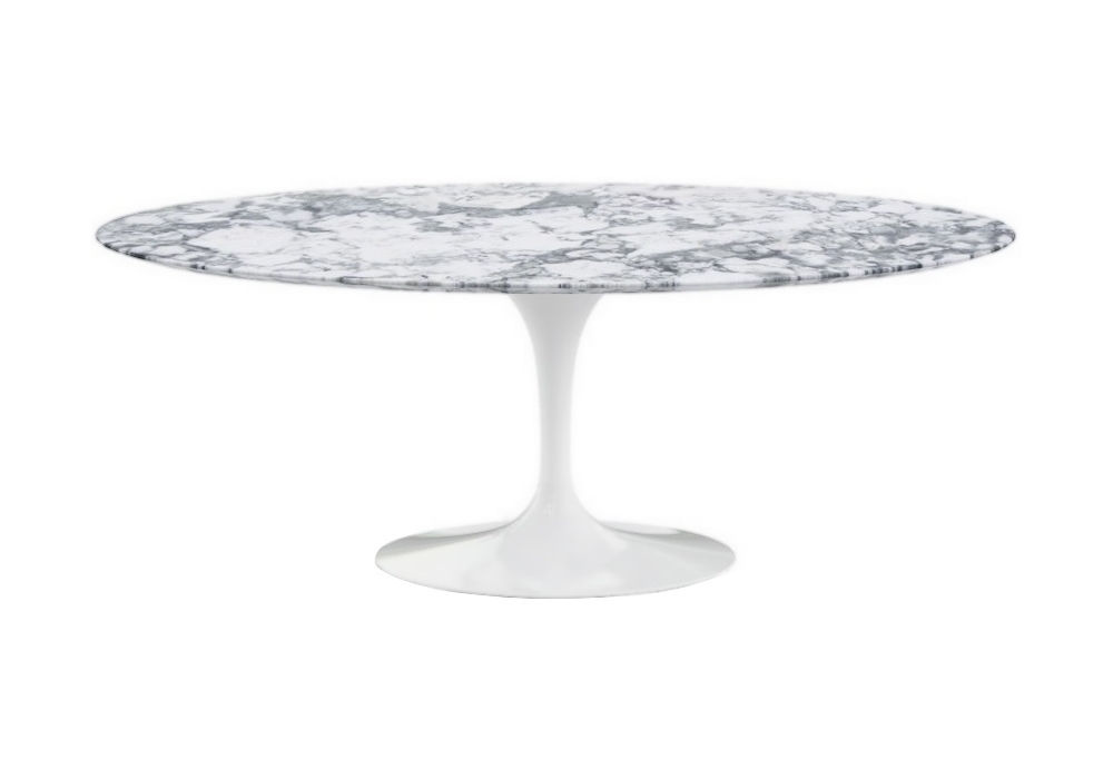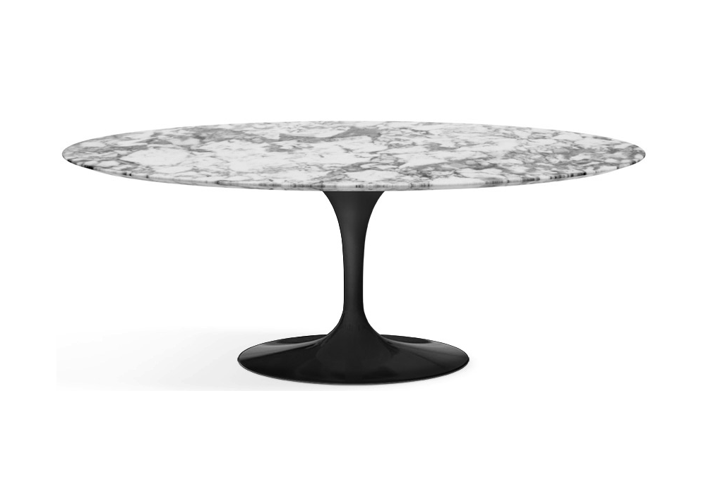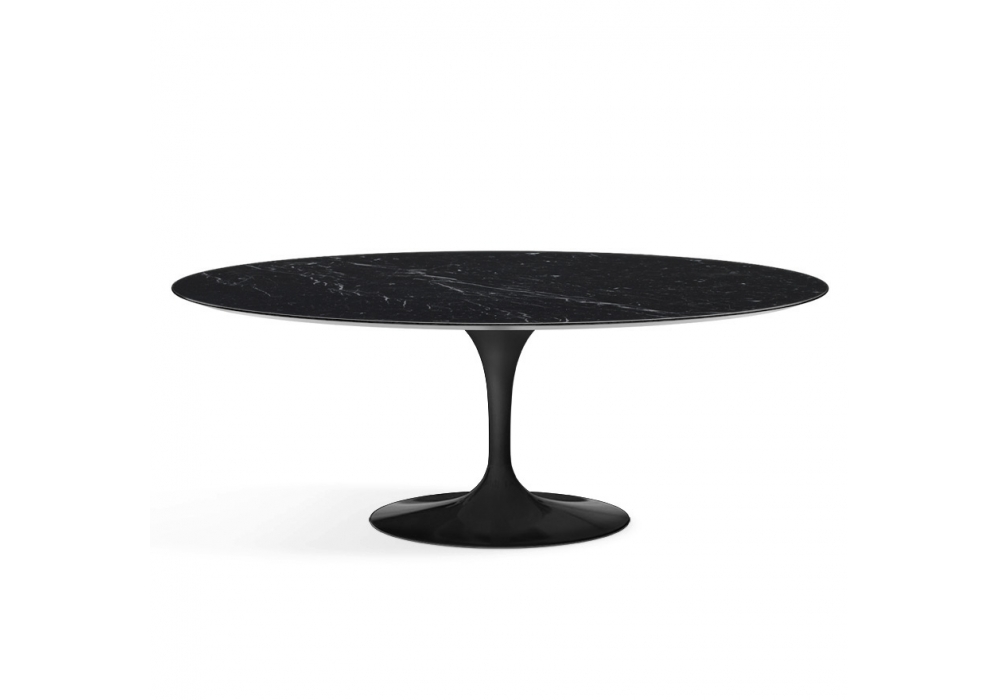 Saarinen firmato da Eero Saarinen per Knoll è un tavolo ovale con piano in marmo in diverse finiture lucide o opache. Base in alluminio con finitura in Rilsan bianco o nero.