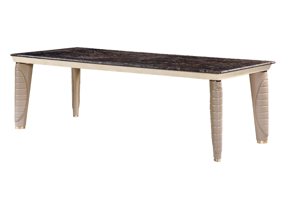 Vogue firmato da Andrea Bonini per Turri è un tavolo con gambe in massello rivestite in differenti pelli, piano e sottopiano in MDF laccato lucido o marmo. Su richiesta è disponibile anche nella dimensione 350 x 110 x H 75 con piano in legno laccato lucido.