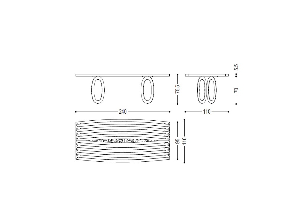 | Dimensioni | - 240 x 95/ 110 x H 75.5 cm |