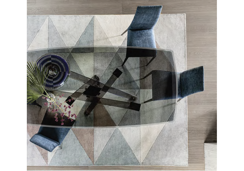 Shangai Limited Edition firmato da Riflessi è un tavolo con base in metacrilato trasparente effetto fumé, formata da gambe inclinate e sovrapposte in maniera asimmetrica con snodo centrale in acciaio inox Reflect Black. Il piano è in cristallo temperato trasparente fumé bisellato.