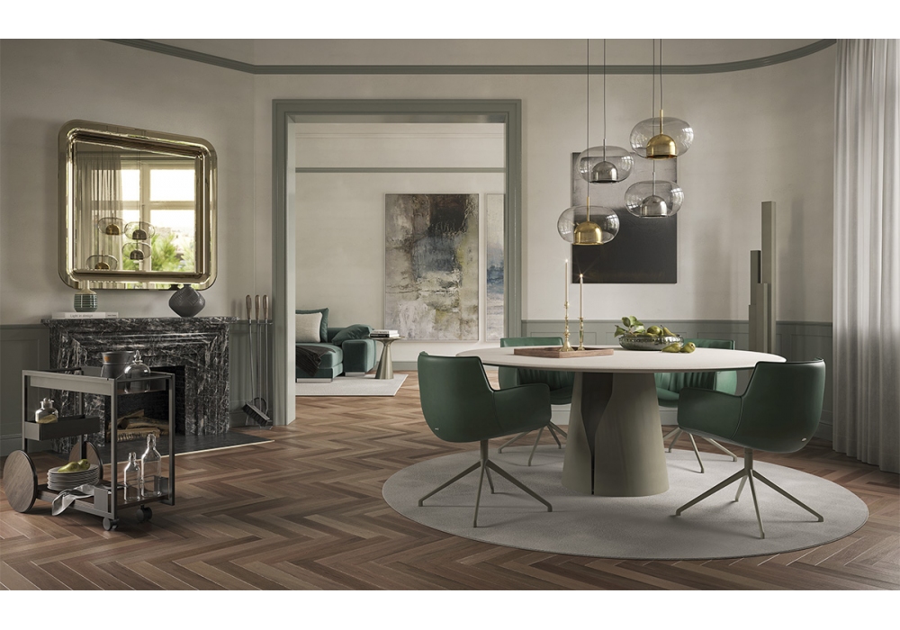 Giano Argile firmato da Manzoni & Tapinassi per Cattelan Italia è un tavolo con base in acciaio verniciato, piano in MDF spatolato in argilla. Disponibile in diverse finiture.