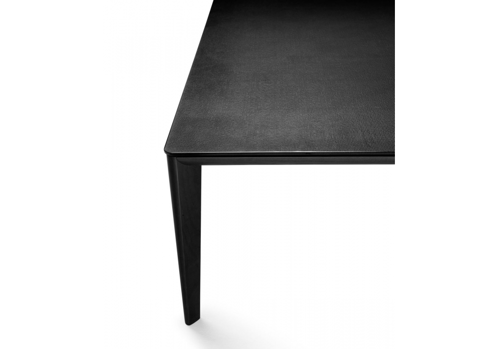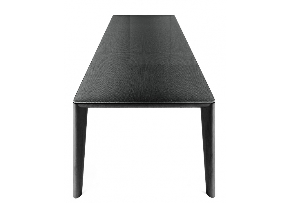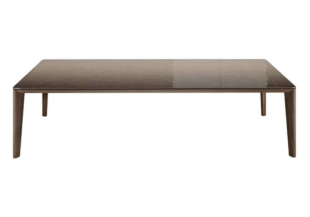Flaminio firmato da Studio Klass per Fiam è un tavolo con piano in vetro fuso a gran fuoco e temperato, retrovernciato con tinte metallizzate. Struttura in legno massello disponibile nelle finiture Tabacco o termotrattato nero.