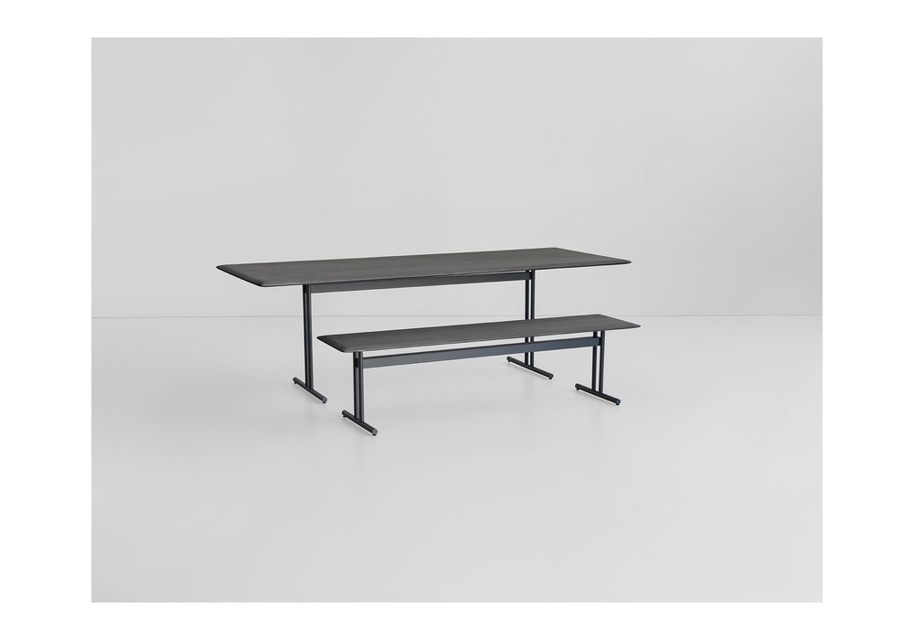 Graphic firmato da Victor Vasilev e Mario Ferrarini per Potocco è un tavolo con base in metallo verniciato e piano in massello di frassino in differenti finiture.