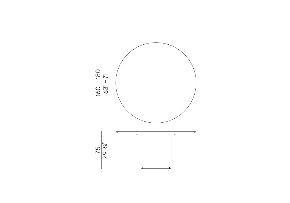 | Diametro del piano | Ø 160 cm; Ø 180 cm. |
