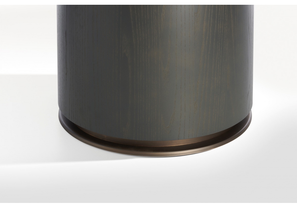 Otab firmato da Gabriele e Oscar Buratti per Potocco è un tavolo rotondo con base in frassino o noce Canaletto opaco e piano in diverse finiture di marmo. Disponibile con o senza piatto rotante Lazy Susan.