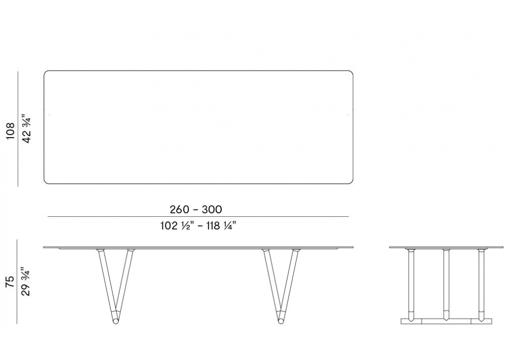 | Dimensioni | 260 x 108 x H 75 cm; 300 x 108 x H 75 cm. |