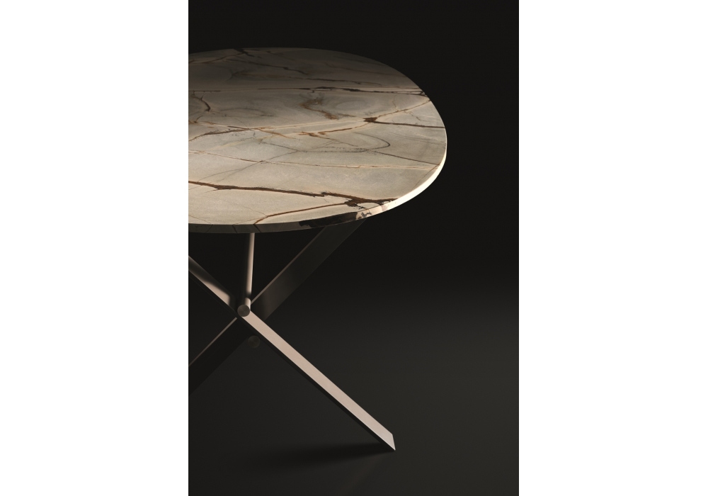 XCS firmato da Gabriele e Oscar Buratti per Ditre Italia è un tavolo con struttura portante in metallo con puntale in acciaio ionx, piano in marmo o legno. Disponibile in diverse finiture e dimensioni.