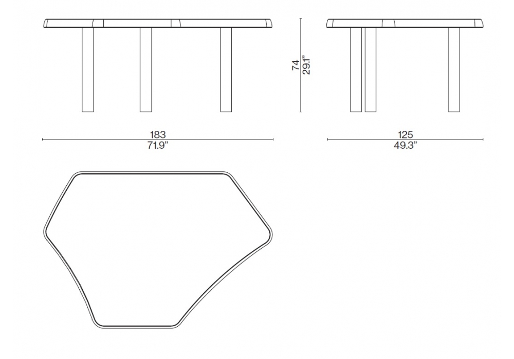 Table Montparnasse firmato da Charlotte Perriand per Cassina è un tavolo sagomato realizzato in legno massello di frassino tinto nero o noce canaletto.