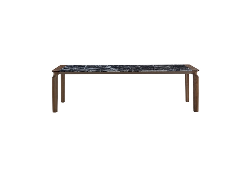 Amphora M firmato da Emmanuel Gallina per Porada è un tavolo da pranzo con piano in marmo e gambe perimetrali in massello di noce canaletta. Disponibile in diverse finiture.