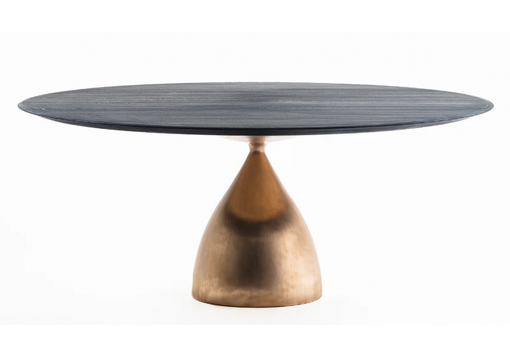 Raindrop Casting Bronze firmato da Time & Style ēdition per DePadova è un tavolo di forma circolare con base in fusione di bronzo lucidato a mano di colore bronzo scuro o bronzo chiaro. Il piano è in legno massello di rovere tinto bianco neve o di colore grigio carbone finito con vernice trasparente.