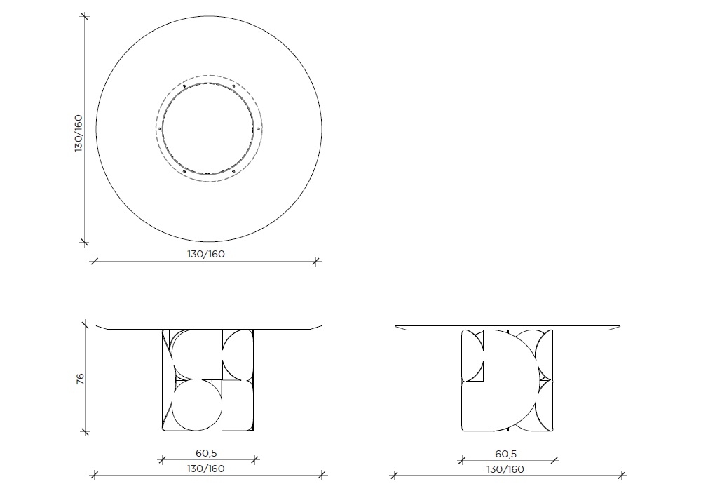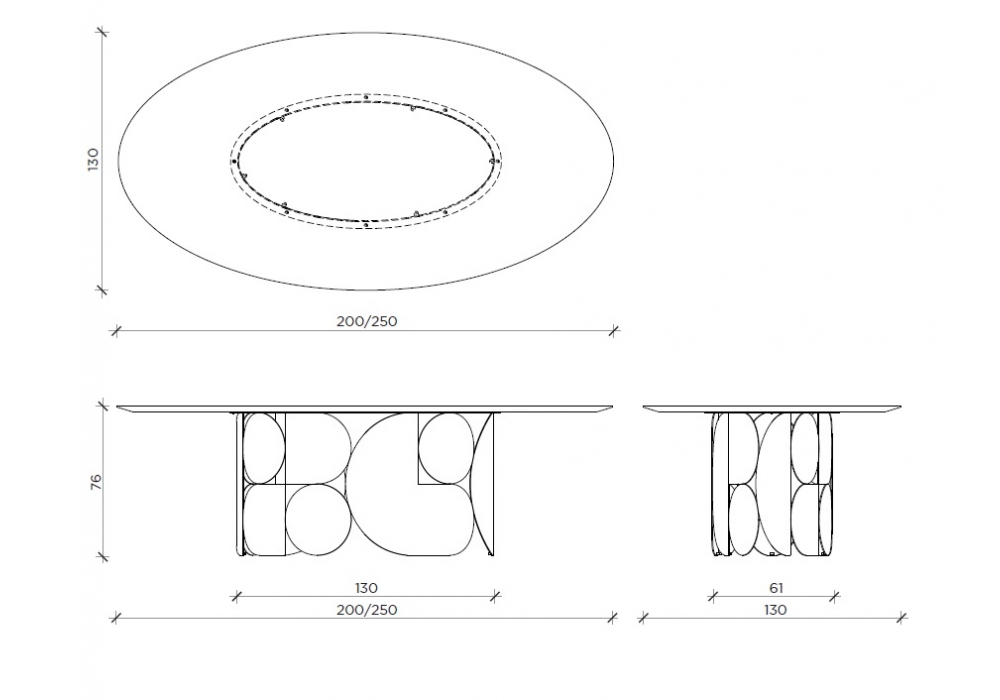 | Dimensioni | Ø 130 x H 76 cm; Ø 160 x H 76 cm; 200 x 130 x H 76 cm; 250 x 130 x H 76 cm. |