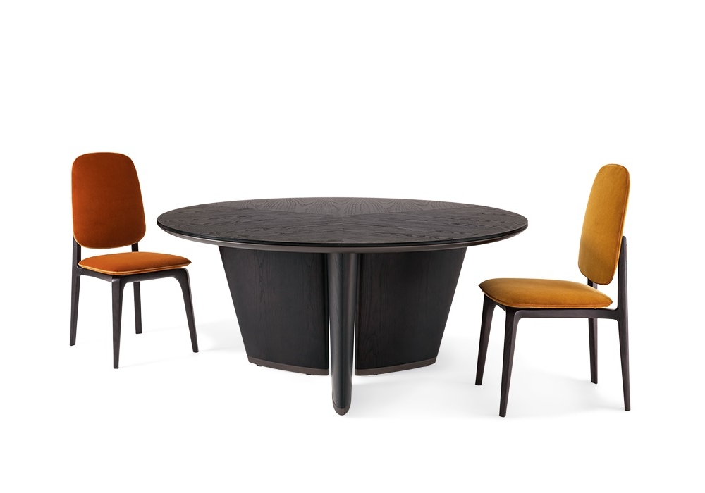 Mistral firmato da Dainelli Studio per Giorgetti è un tavolo con piano rotondo o rettangolare in frassino o marmo, struttura in frassino. Disponibile in diverse finiture e dimensioni.