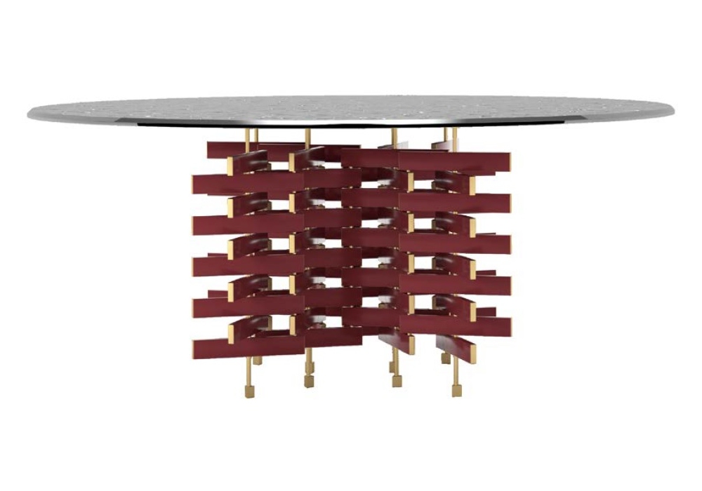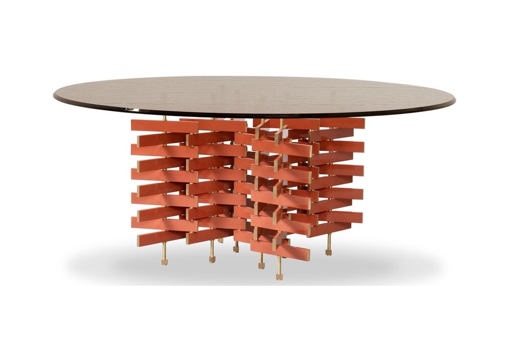 Loom firmato da Hannes Peer per Baxter è un tavolo con piano in vetrofusione lavorato con una tecnica particolare per ottenere superfici imperfette. Base in materiale a scelta e dettagli in ottone satinato. Disponibile in diverse dimensioni.
