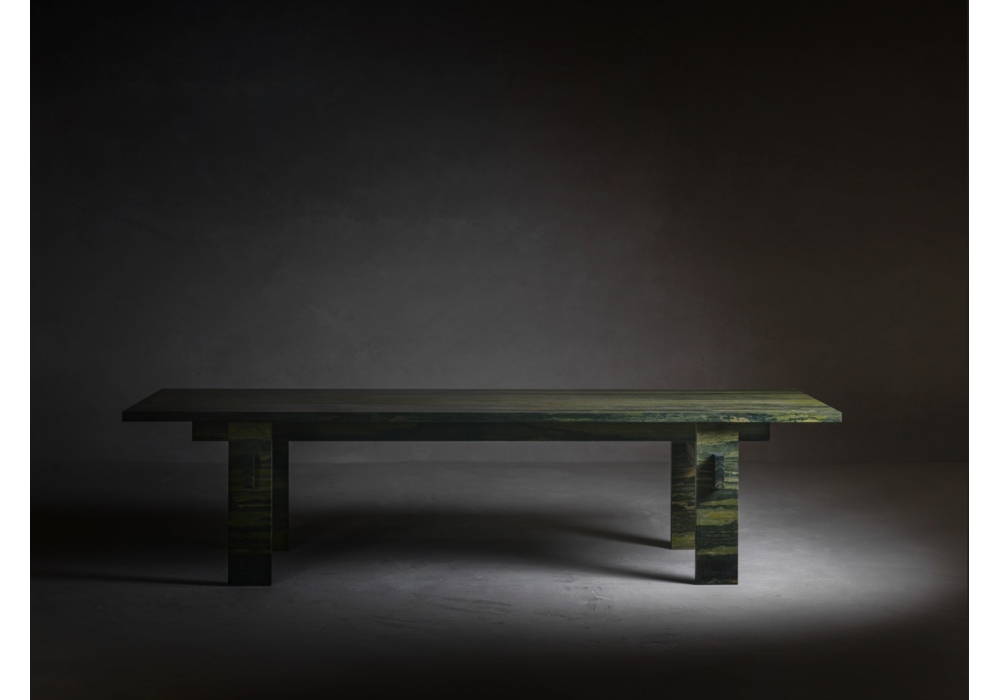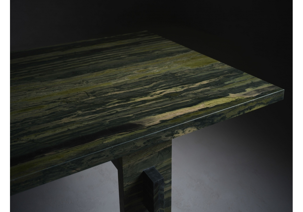 Majesty firmato da Christophe Pillet per Kreoo è un tavolo di forma quadrangolare interamente realizzato in marmo. Le base è sviluppata da quattro gambe rettangolari e vi sono incastrati due elementi, perpendicolari alle gambe, che sostengono a loro volta una trave centrale sulla quale poggia l’ampio piano rettangolare. Majesty è disponibile in differenti finiture.