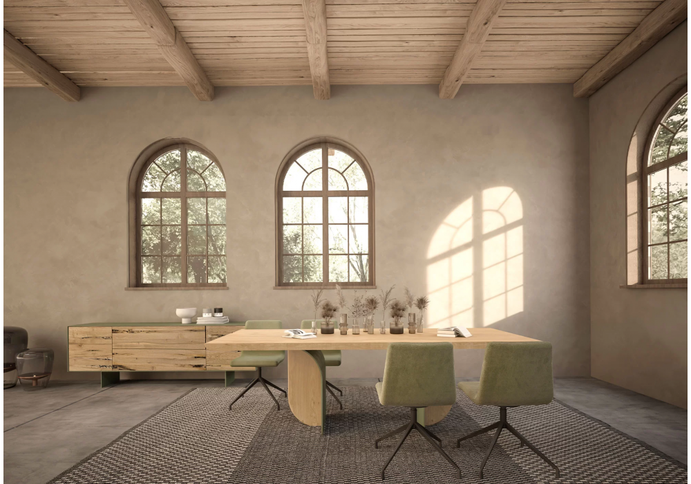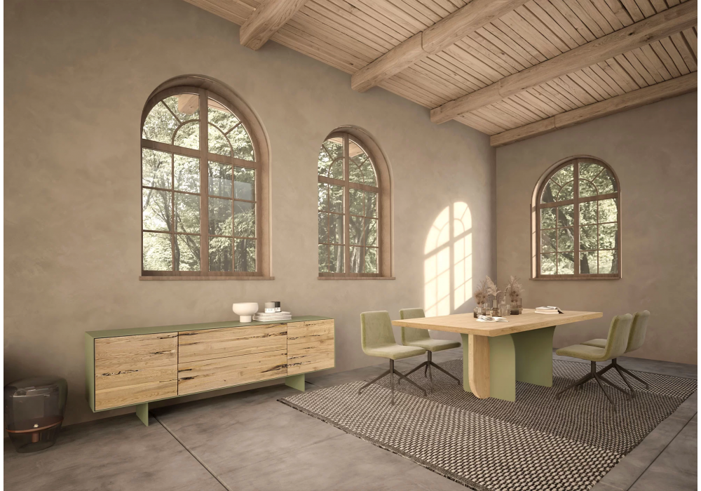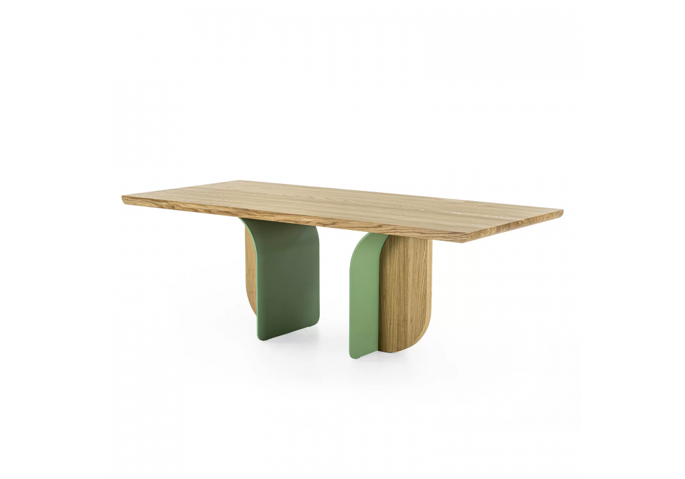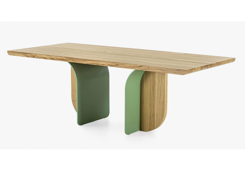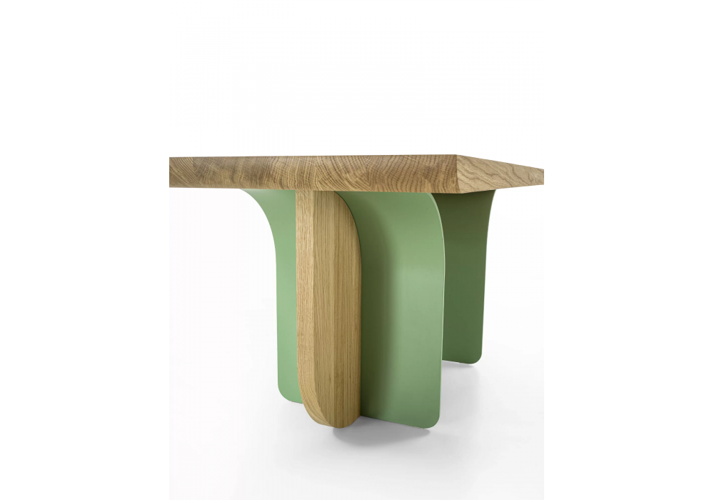 Forma firmato da Carlesi Tonelli per Riva 1920 è un tavolo con top in legno massello a liste incollate e bordi smussati, che si caratterizza per le gambe, nate dall’incontro tra ferro e legno e create per apparire diverse a seconda dell’angolazione da cui le si guarda. Disponibile in diverse finiture e dimensioni.