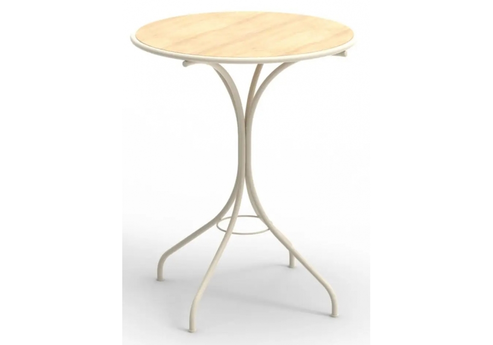 Ample firmato da Luca Nichetto per Gebrüder Thonet Vienna è un tavolo bistrot con struttura in tubolare metallico e piano in legno Iroko (per outdoor) e frassino (per indoor).