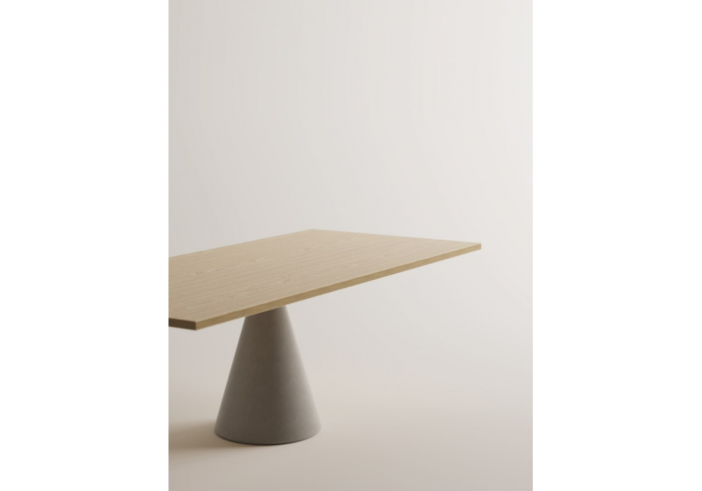 Club 44 firmato da Angelo Mangiarotti per AgapeCasa è un tavolo con base a forma di tronco conico realizzata in cemento; collegata al piano da una struttura a croce in acciaio verniciato nero. Il piano, in differenti forme, è realizzato in vetro fumè, o in multistrati di betulla con bordo a vista e top lastronato in rovere di Slovenia o in linoleum Forbo.