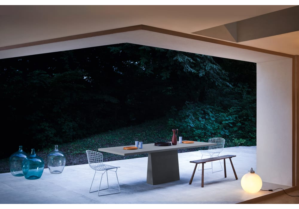 Incas firmato da Angelo Mangiarotti per Agapecasa è un tavolo realizzato in marmo in differenti finiture. I supporti, con forma quadrata si incastrano nel piano.