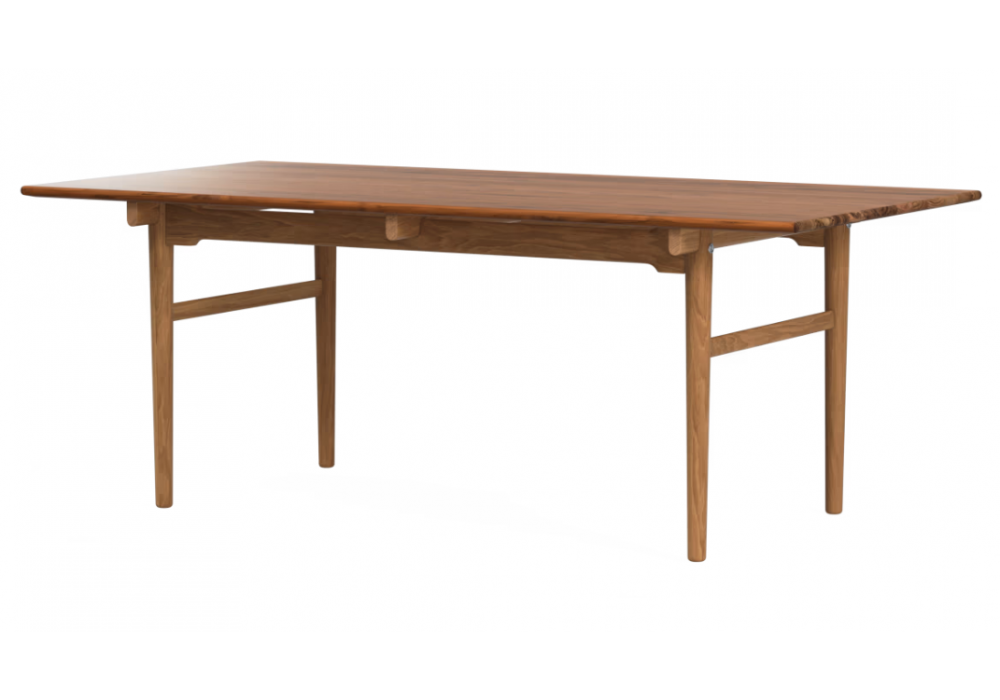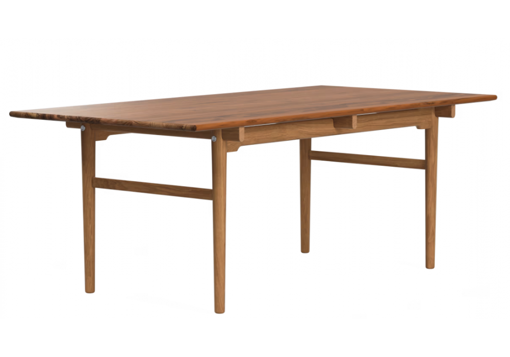 CH327 firmato da Hans J. Wegner per Carl Hansen & Søn è un tavolo realizzato in legno massello di faggio, rovere noce o teak in varie finiture. É possibile aggiungere una prolunga ( da posizionamento laterale / terminale) in MDF grigio o nero.