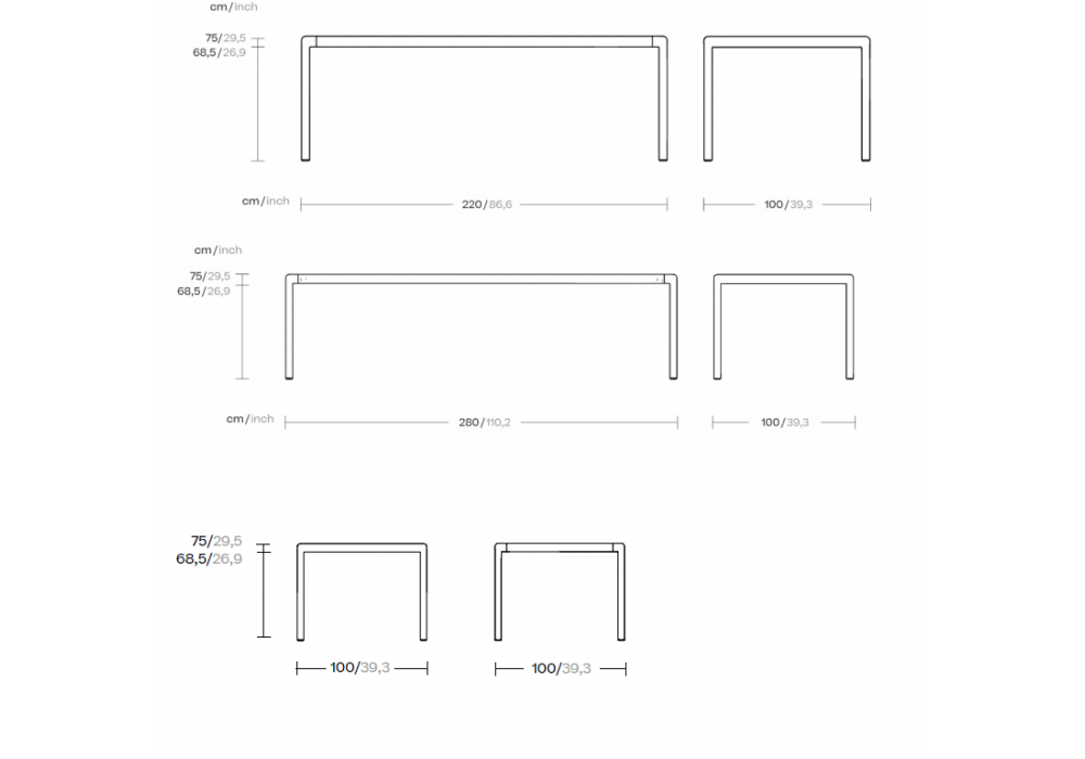| Dimensioni | 100 x 100 x H 75 cm; 220 x 100 x H 75 cm; 280 x 100 x H 75 cm. |