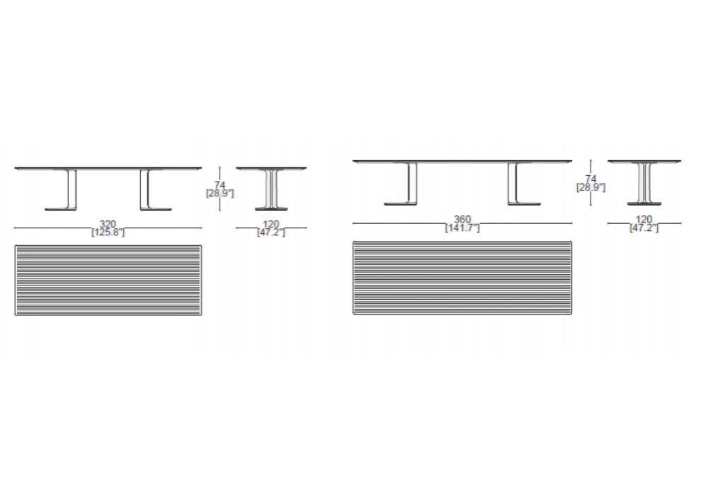 | Dimensioni | 320 x 120 x H 73 cm; 360 x 120 x H 73 cm. |
