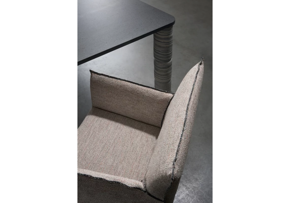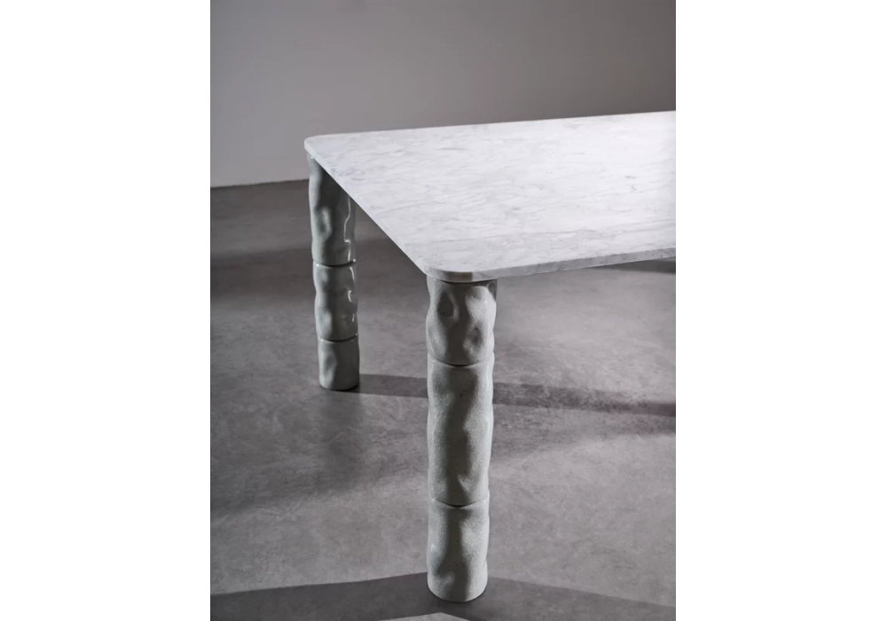 Brick firmato da Paola Navone per Gervasoni è un tavolo rettangolare, gambe cilindriche tornite a mano in ceramica smaltata con effetto craquelé colore Celadon o in porcellana bianca e sabbia vulcanica con finitura opaca effetto stratificato. Piano in marmo bianco Carrara o in pietra lavica levigata.