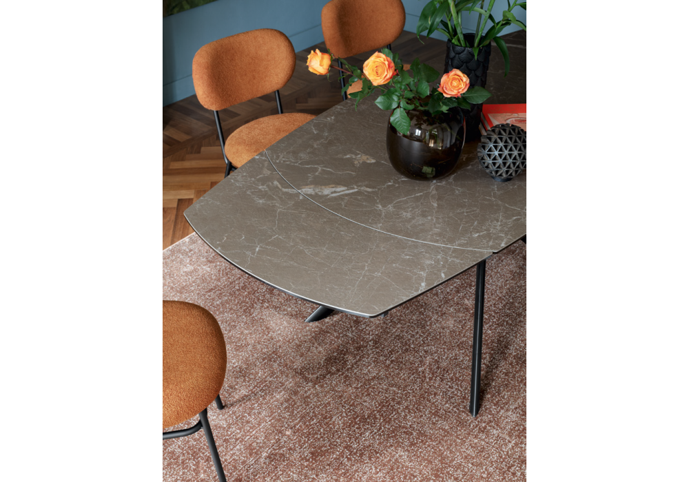 Giove Plus firmato da Connubia è un tavolo con struttura in metallo e top in ceramica, allungabile con meccanismo di apertura automatica, che si attiva facendolo ruotare. Disponibile in diverse finiture.