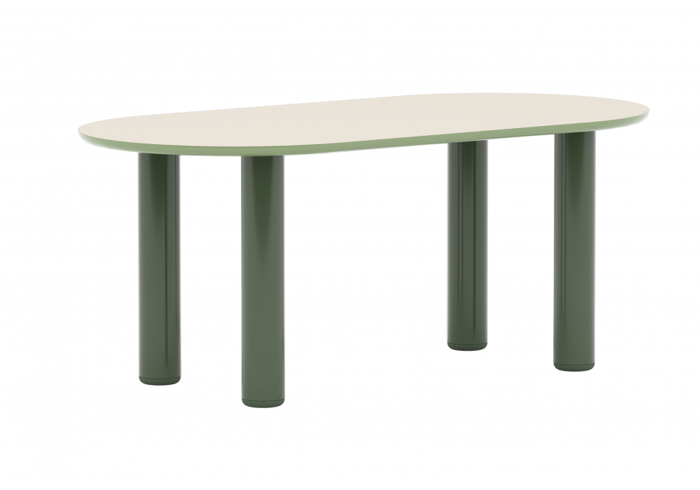 Eclipso firmato da Jaime Hayon per BD Barcelona è un tavolo da pranzo con pano in MDF impiallacciato Fenix e gambe in alluminio estruso verniciato in finitura lucida.
