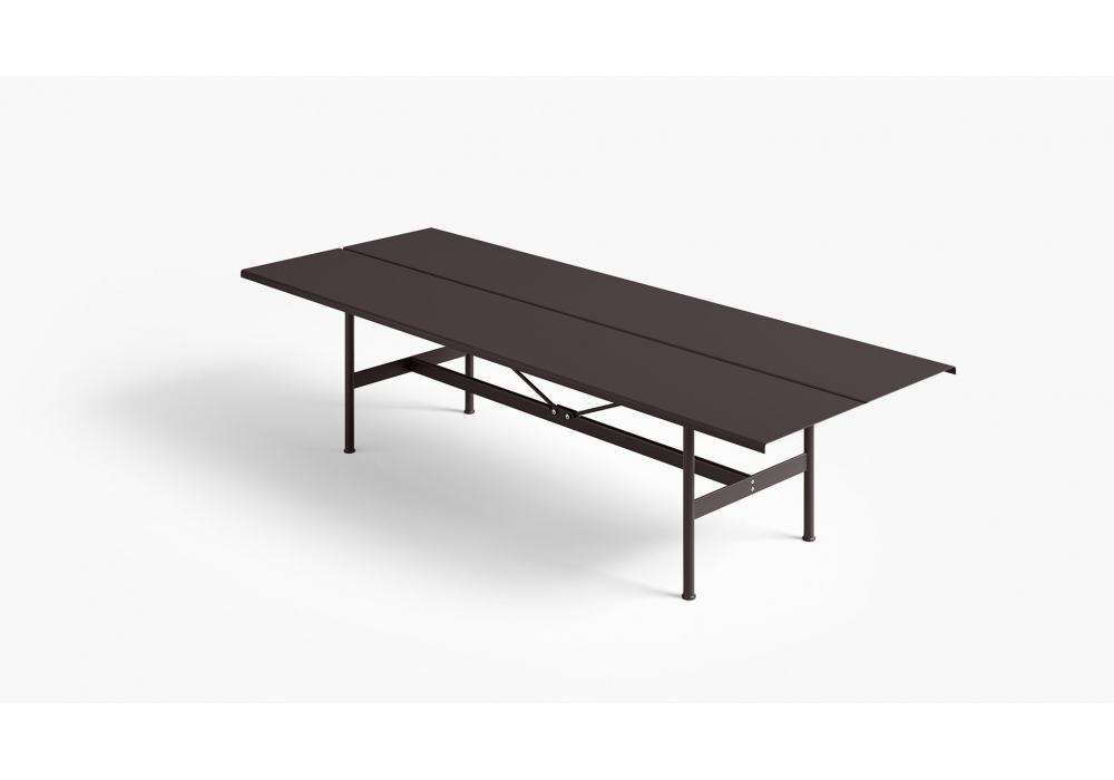 Zinco firmato da Luca Pevere per Desalto è un tavolo realizzato in acciaio zincato con struttura smontabile, il piano è composto da due lamiere piegate, assemblate con fissaggi meccanici a vista. Disponibile in diverse finiture e dimensioni.