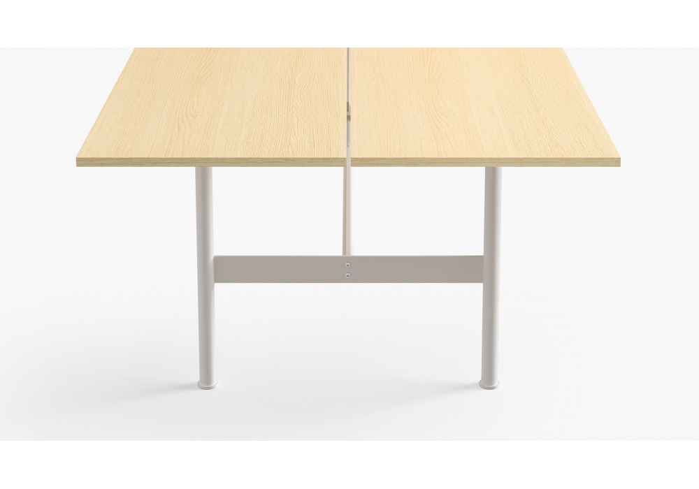 Zinco firmato da Luca Pevere per Desalto è un tavolo realizzato in acciaio zincato con struttura smontabile, il piano è composto da due lamiere piegate, assemblate con fissaggi meccanici a vista. Disponibile in diverse dimensioni.