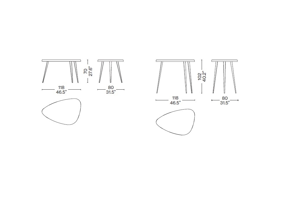 527 Mexique firmato da Charlotte Perriand per Cassina è un tavolo realizzato con piano in legno massello o in legno laccato. Gambe in metallo verniciate nero opaco o canna di fucile. Disponibile in diverse finiture e dimensioni.