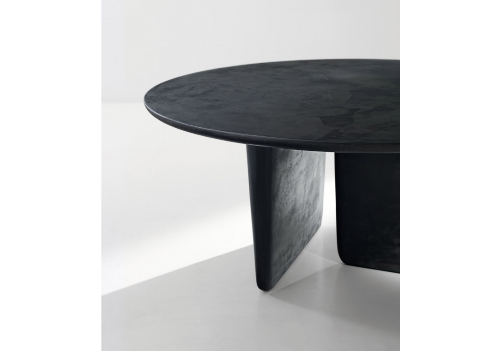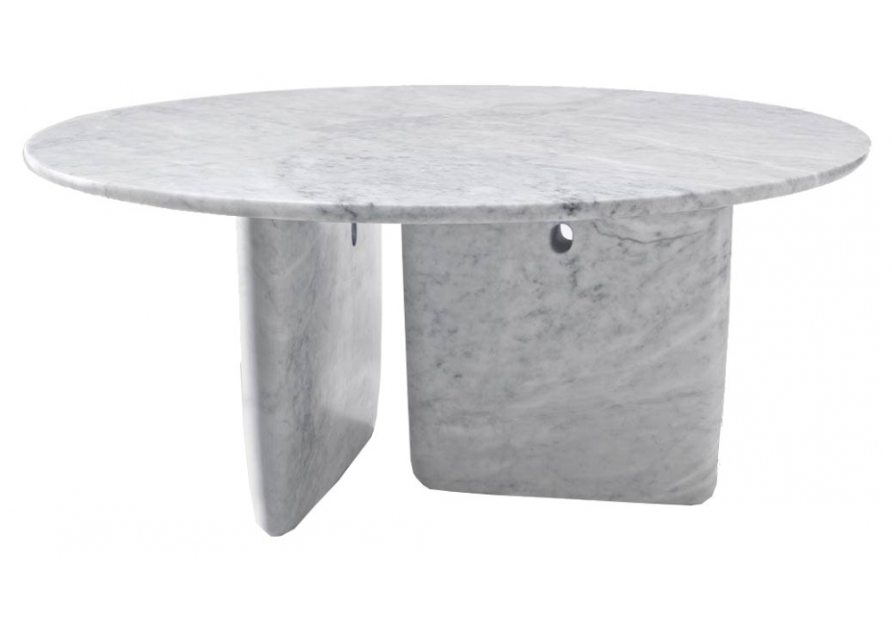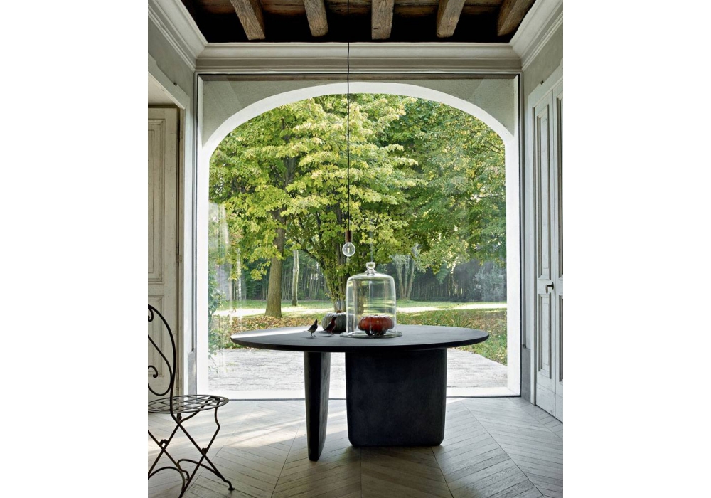 Tobi-Ishi firmato da Edward Barber e Jay Osgerby per B&B Italia è un tavolo rotondo realizzato in marmo o in finitura poliestere lucida in differenti finiture.