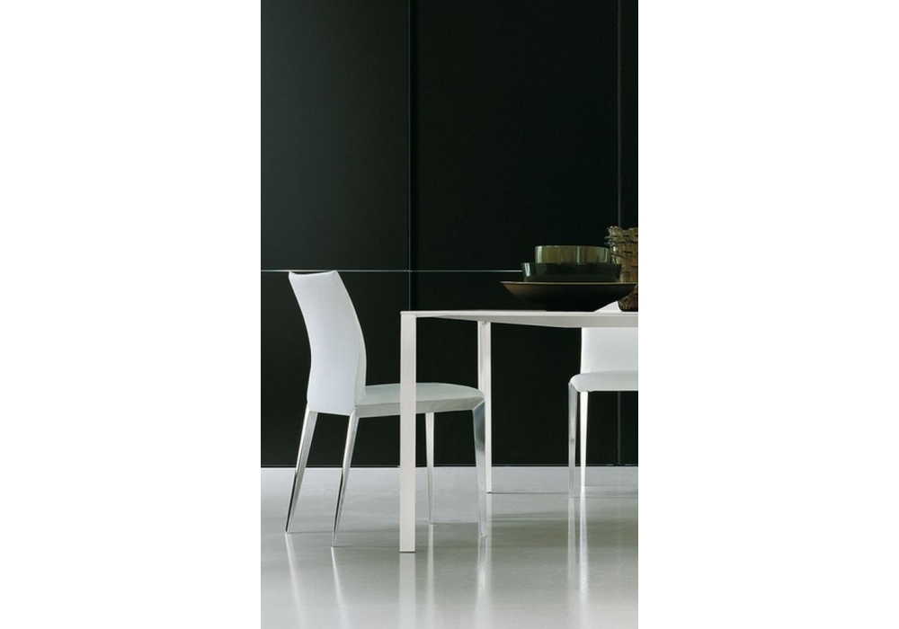 LessLess firmato da Jean Nouvel per Molteni&C è un tavolo quadrato in alluminio. Le quattro gambe sono sagomate a L, con ali di 45 mm e spessore di 8 mm. Il profilo esterno del piano orizzontale del tavolo è sottilissimo e la rigidità è ottenuta piegando la lamiera d’alluminio secondo piani inclinati. Disponibile in diverse finiture e dimensioni.