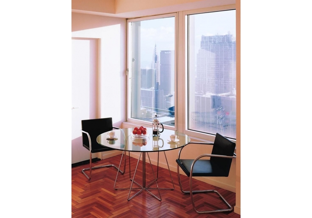 PaperClip firmato da Vignelli Designs per Knoll è un tavolo rotondo con piano in cristallo trasparente e base in todnino d'acciaio in finitura cromata. Disponibile in 3 dimensioni.