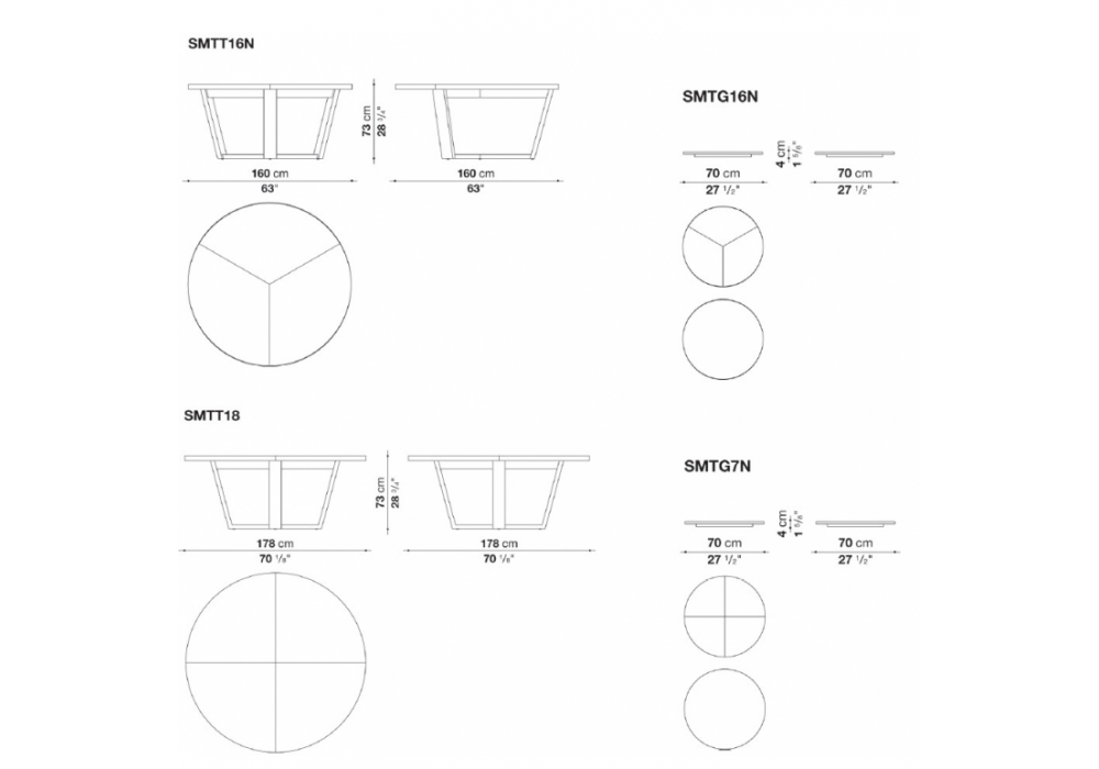 | Dimensioni | Ø 160 x H 73 cm; Ø 178 x H 73 cm. |