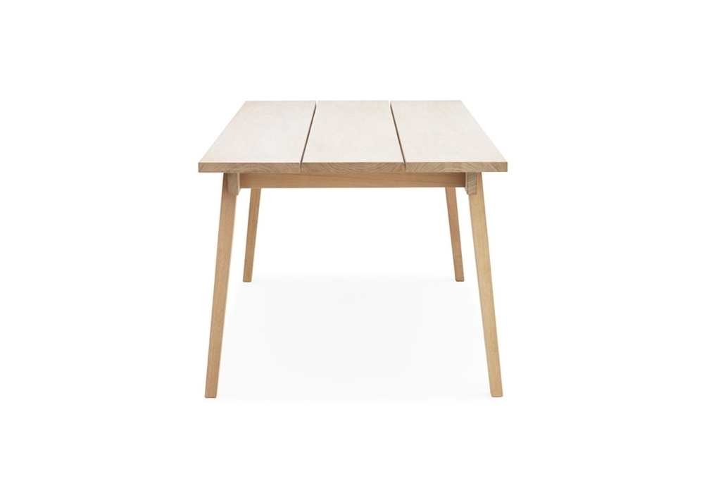 Slice firmato da Hans Hornemann per Normann Copenhagen, è un tavolo, realizzato interamente in legno di rovere. Il piano è formato da tre larghe tavole, che distanziate l'una dall'altra lasciano uno spazio che rende arioso il disegno complessivo, aggiungendogli carattere e personalità. Slice è disponibile in tre differenti dimensioni.