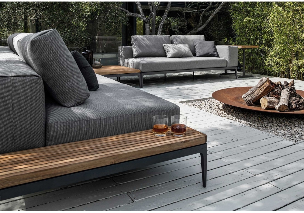 Grid Square firmato da Henrik Pedersen per Gloster è un tavolino da esterno con struttura in alluminio verniciato a polvere e piano in teak o ceramica.