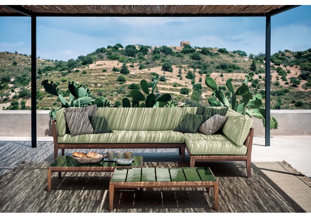 Teka 010 firmata da Gordon Guillaumier per Roda è una poltrona realizzato con struttura in teak e piano in gres o gres smaltato. Il sapiente mix di forme materiali ha come protagonista il teak, abbinato ad una suggestiva ed originale dogatura in gres opaco o smaltato per i top dei piani. Disponibile in due dimensioni.