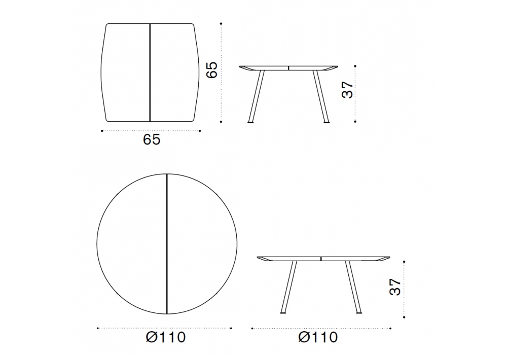 | Dimensioni | 65 x 65 x H 37 cm; Ø 110 x H 37 cm. |