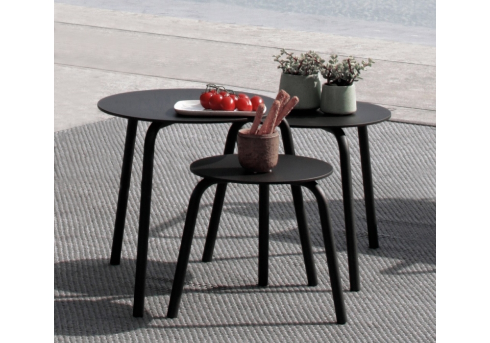 Samba firmato da Kris Van Puyvelde per Royal Botania è un set di tavolini con base e piano in alluminio. Disponibile in 2 finiture.