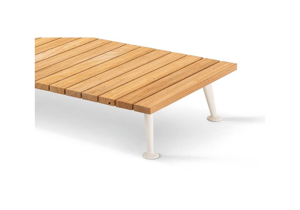 Fenc-e-Nature firmato da Patricia Urquiola per Cassina è un tavolino con struttura in metallo verniciato goffrato e piano realizzato in legno di teak. Disponibile anche in 2 altezze.