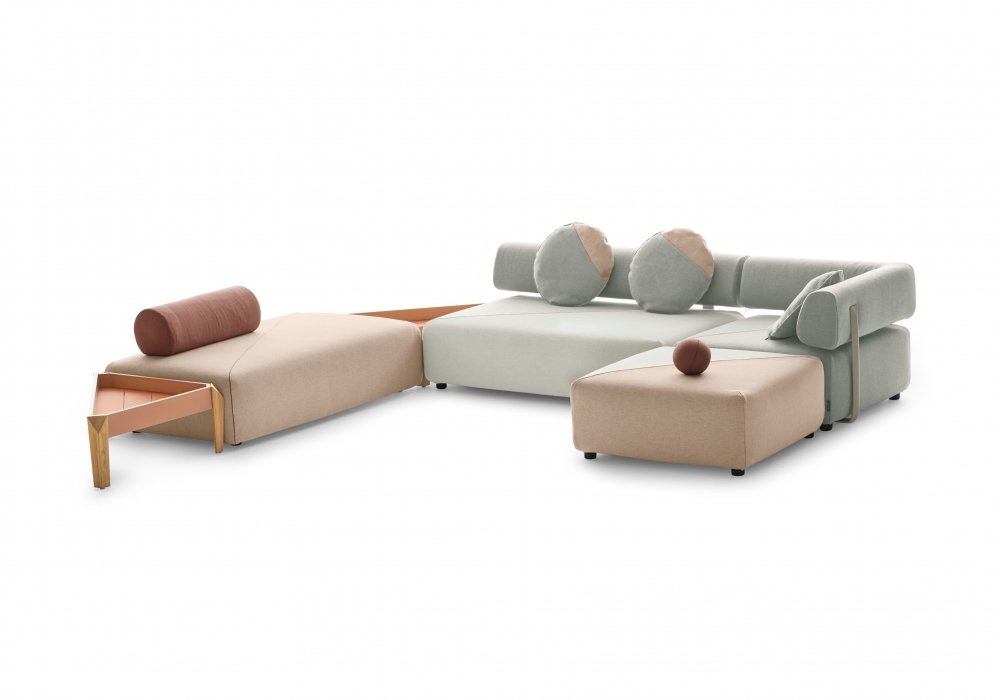 Brixx firmato da Lorenza Bozzoli per Dedon è un tavolino triangolare con gambe in teak e piano in alluminio verniciato a polvere.