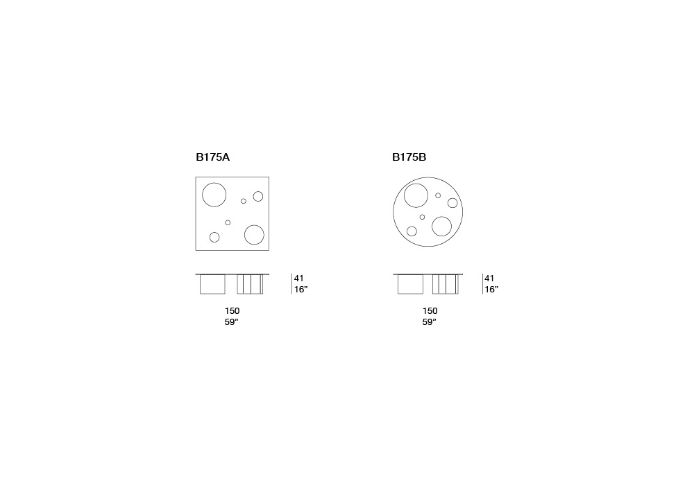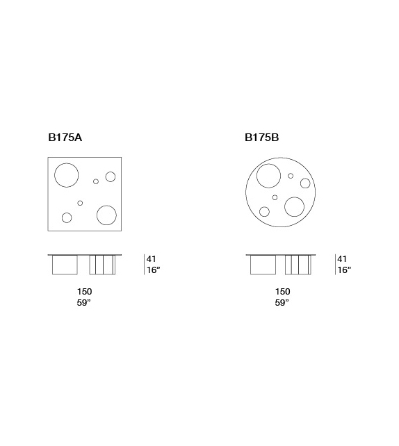 | Dimensioni | 150 x 150 x H 41 cm; Ø 140 x H 41 cm. |