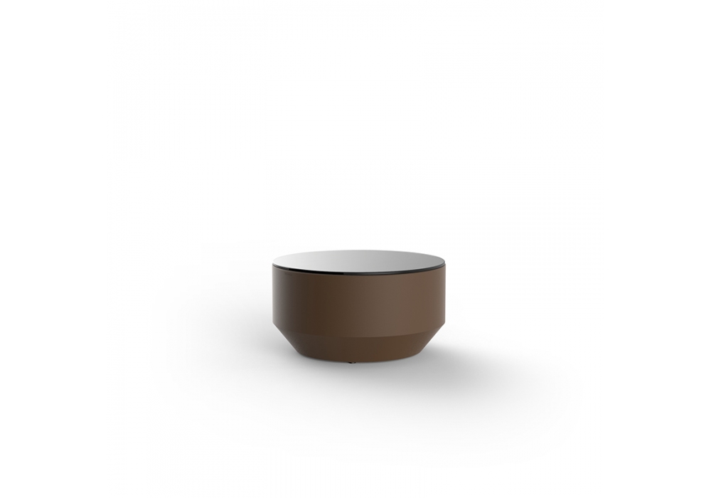 Vela firmato da Ramón Esteve per Vondom è un tavolino rotondo realizzato in resina in polietilene con finitura opaca o laccata brillante o con illuminazione interna. Disponibile in diverse dimensioni.