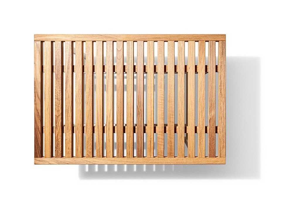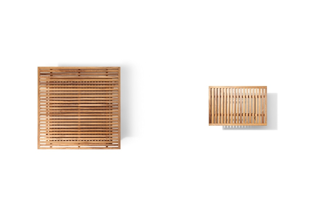 Solaria firmato da Ludovica + Roberto Palomba per Poltrona Frau è un tavolino realizzato con doghe di legno massello di teak nella finitura naturale e base in acciaio inox, verniciata a polveri nella tonalità gesso. Disponibile anche in 2 versioni: con piano singolo o doppio.