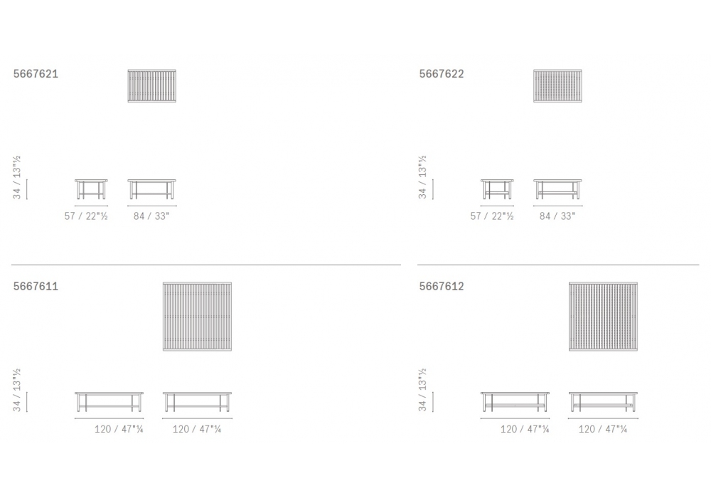 | Dimensioni | 120 x 120 x H 34 cm; 84 x 57 x H 34 cm. |